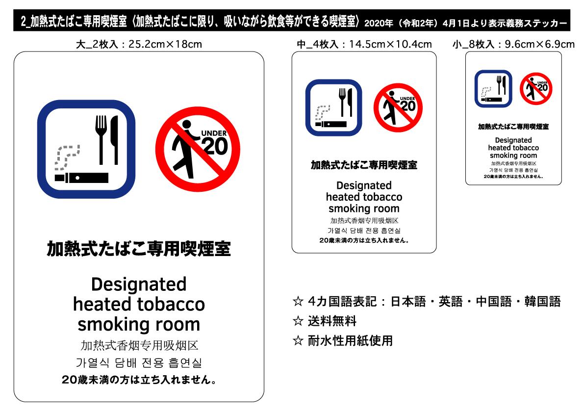厚労省指定 分煙ステッカー・大 2枚入れ・№2 加熱式たばこ専用喫煙室