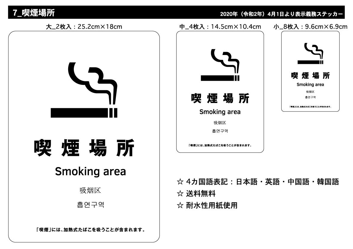厚生労働省指定、受動喫煙に対応したステッカーです。