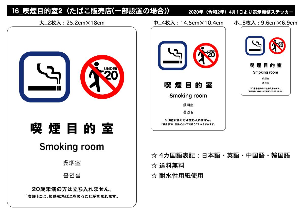 厚労省指定 分煙ステッカー・大 2枚入れ・№16 喫煙目的室 2