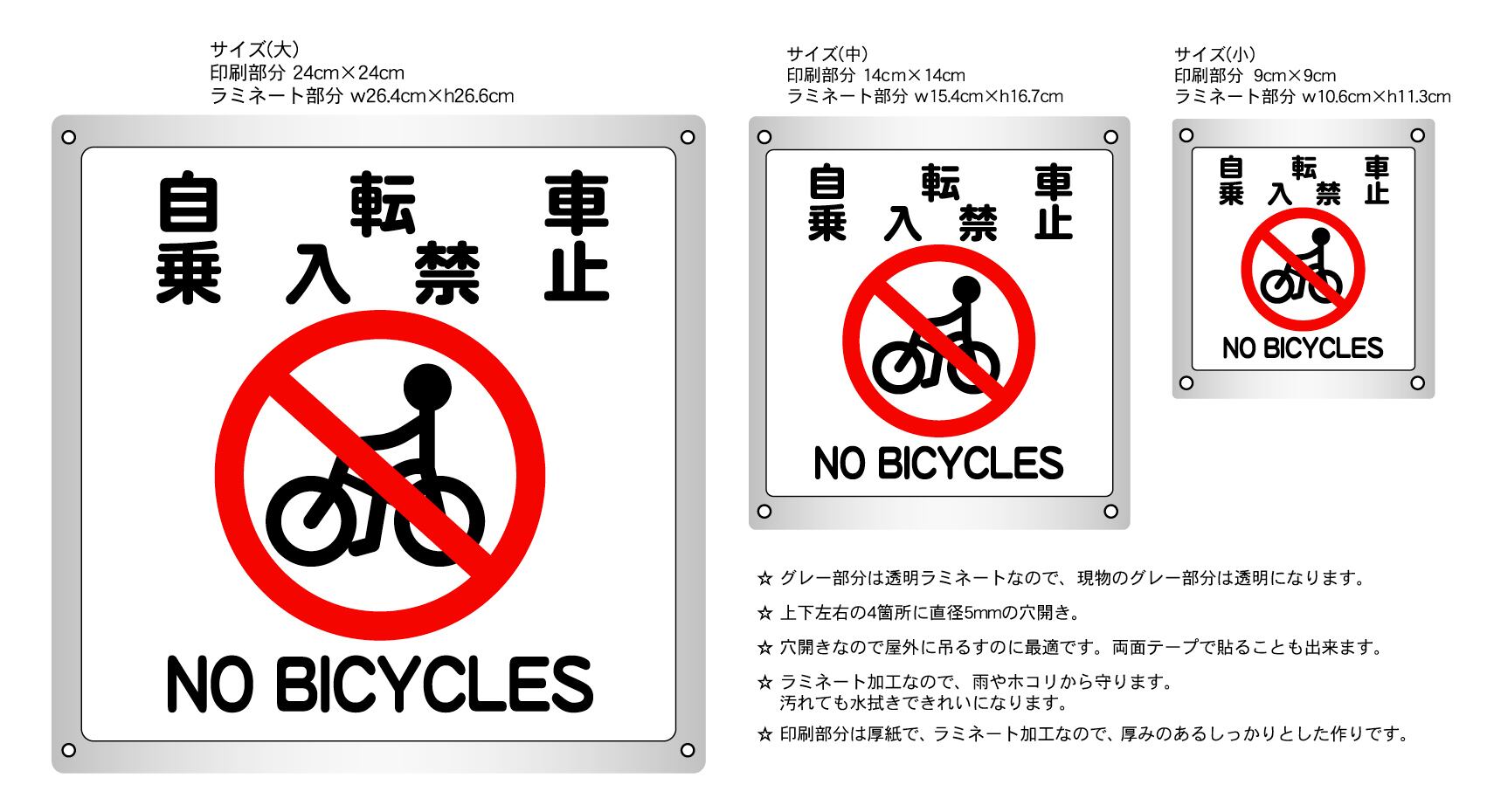 ボード・警告1・10.6×12cm・自転車乗入禁止