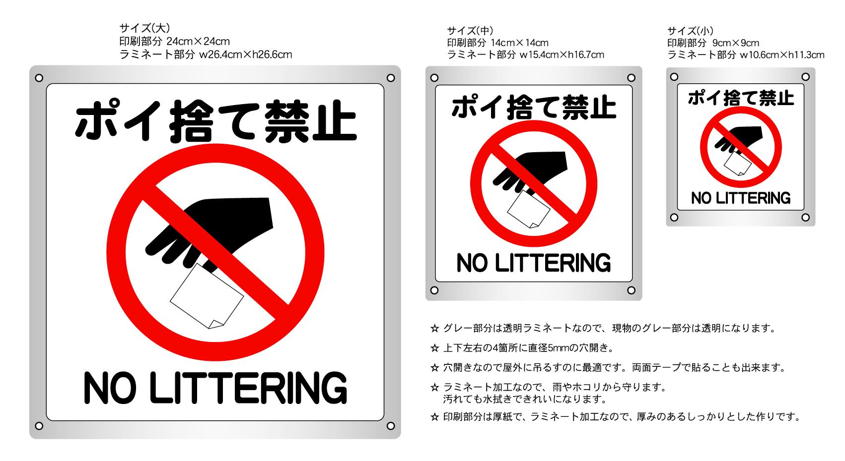 ボード・警告1・10.6×12cm・ポイ捨て禁止