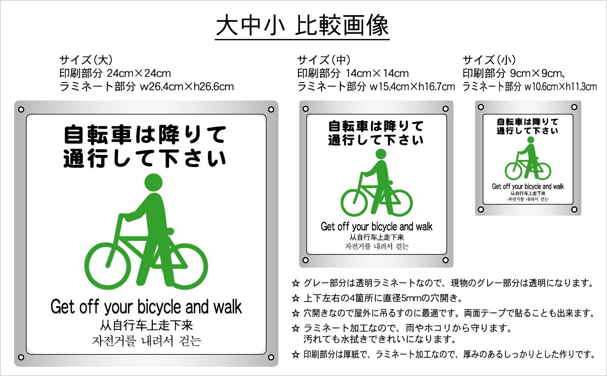 ボード・警告2・10.6×12cm・自転車は降りて通行して下さい