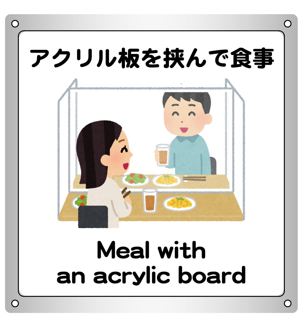 ボード・警告3・10.6×12cm・アクリル板を挟んで食事