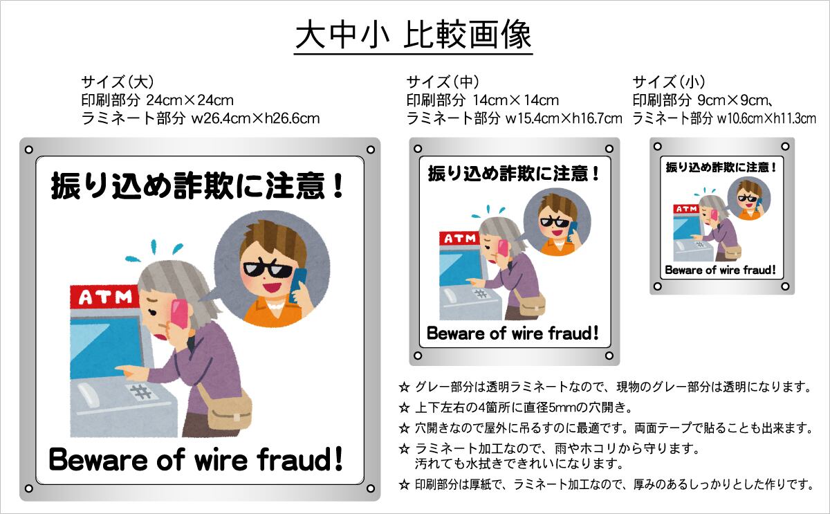 ボード・警告3・10.6×12cm・振り込め詐欺に注意!