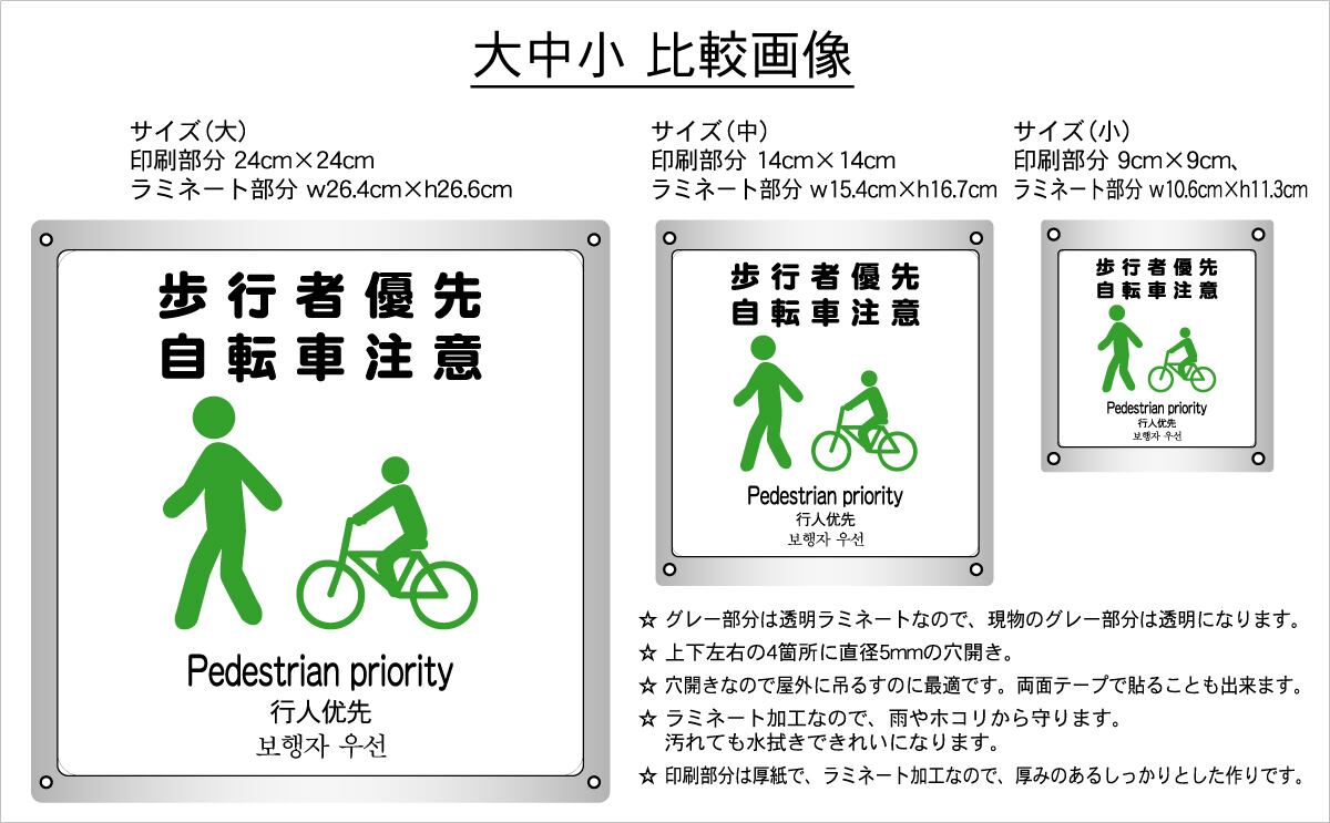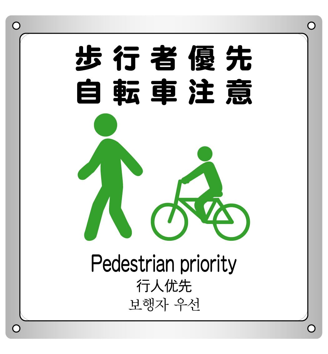 ボード・警告2・15.4×17cm・歩行者優先・自転車注意