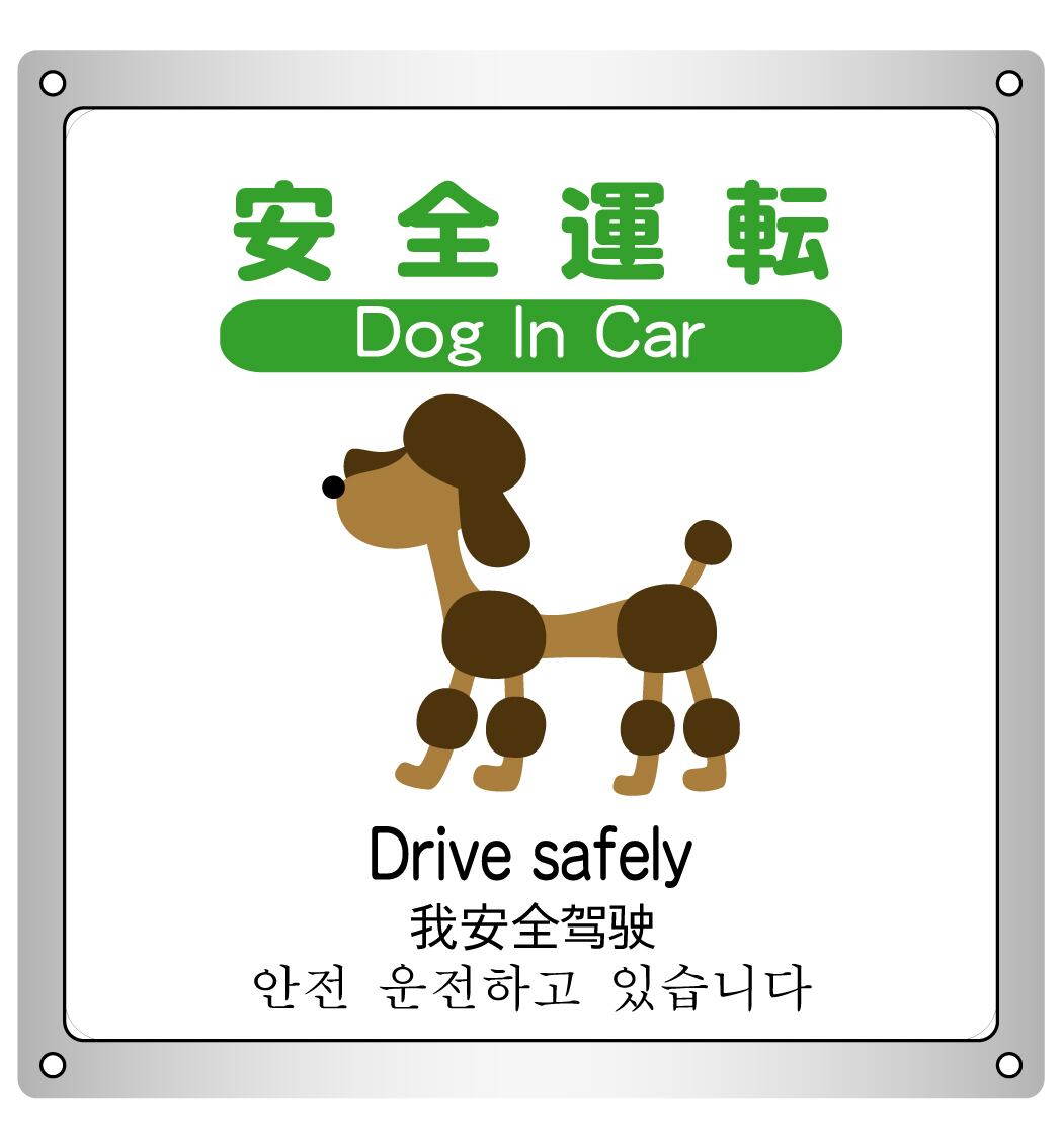ボード・警告2・15.4×17cm・安全運転(DogInCar)