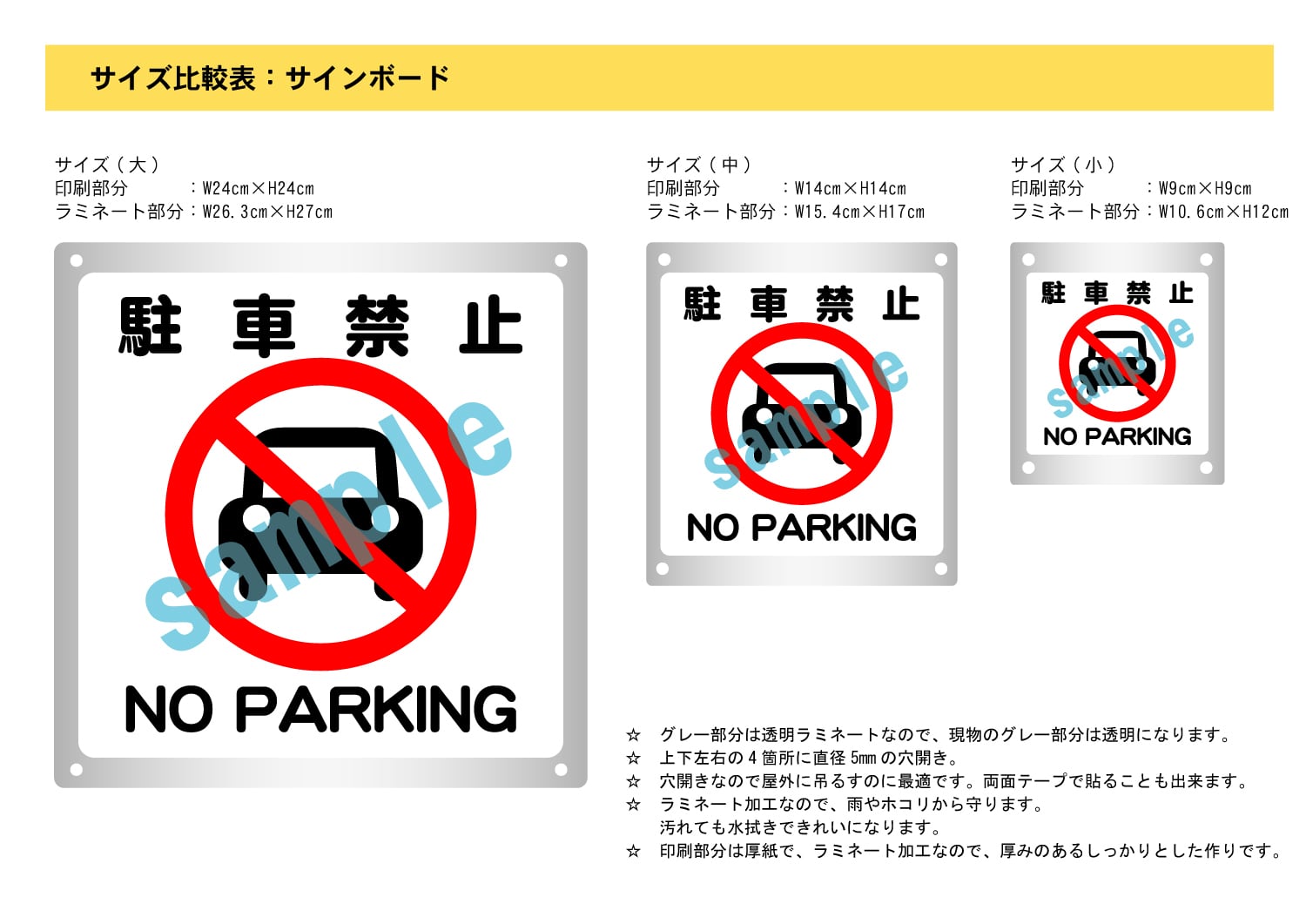 ステッカータイプ、ボードタイプ(防水 ラミネート加工)の2種類に、サイズは大、中、小の3種類がございます。