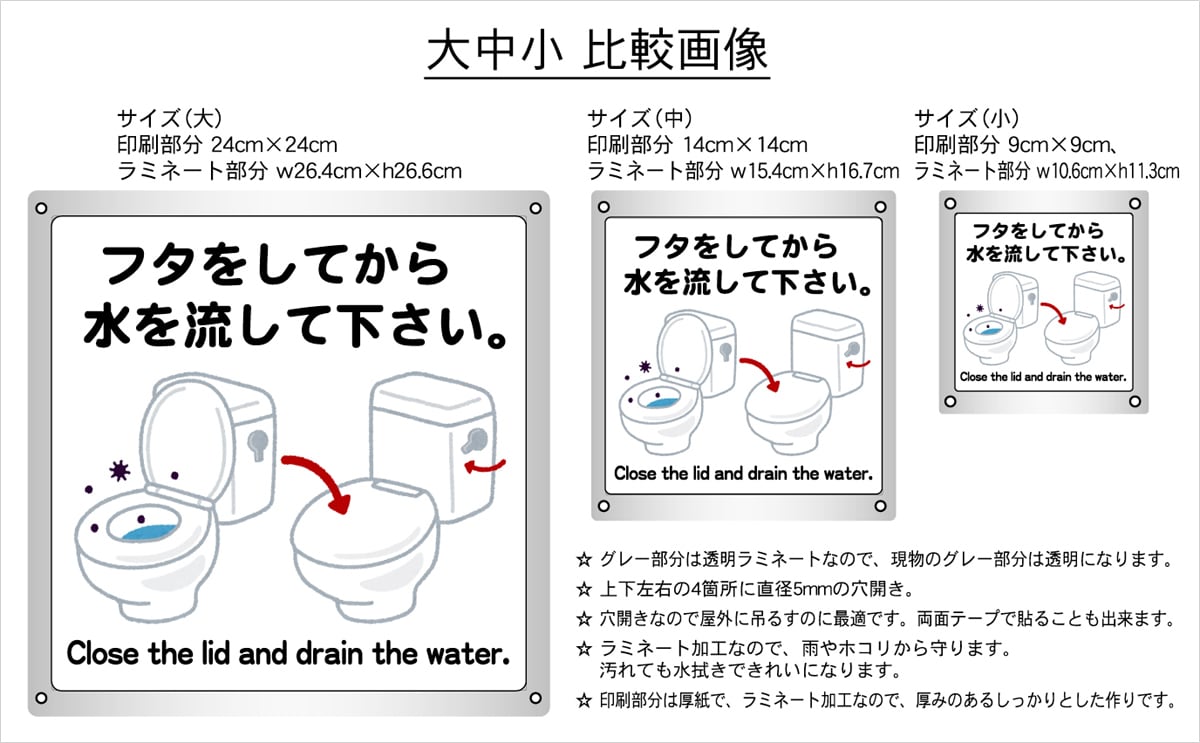 ボード・トイレ・15.4×17cm・フタをしてから水を流して下さい。