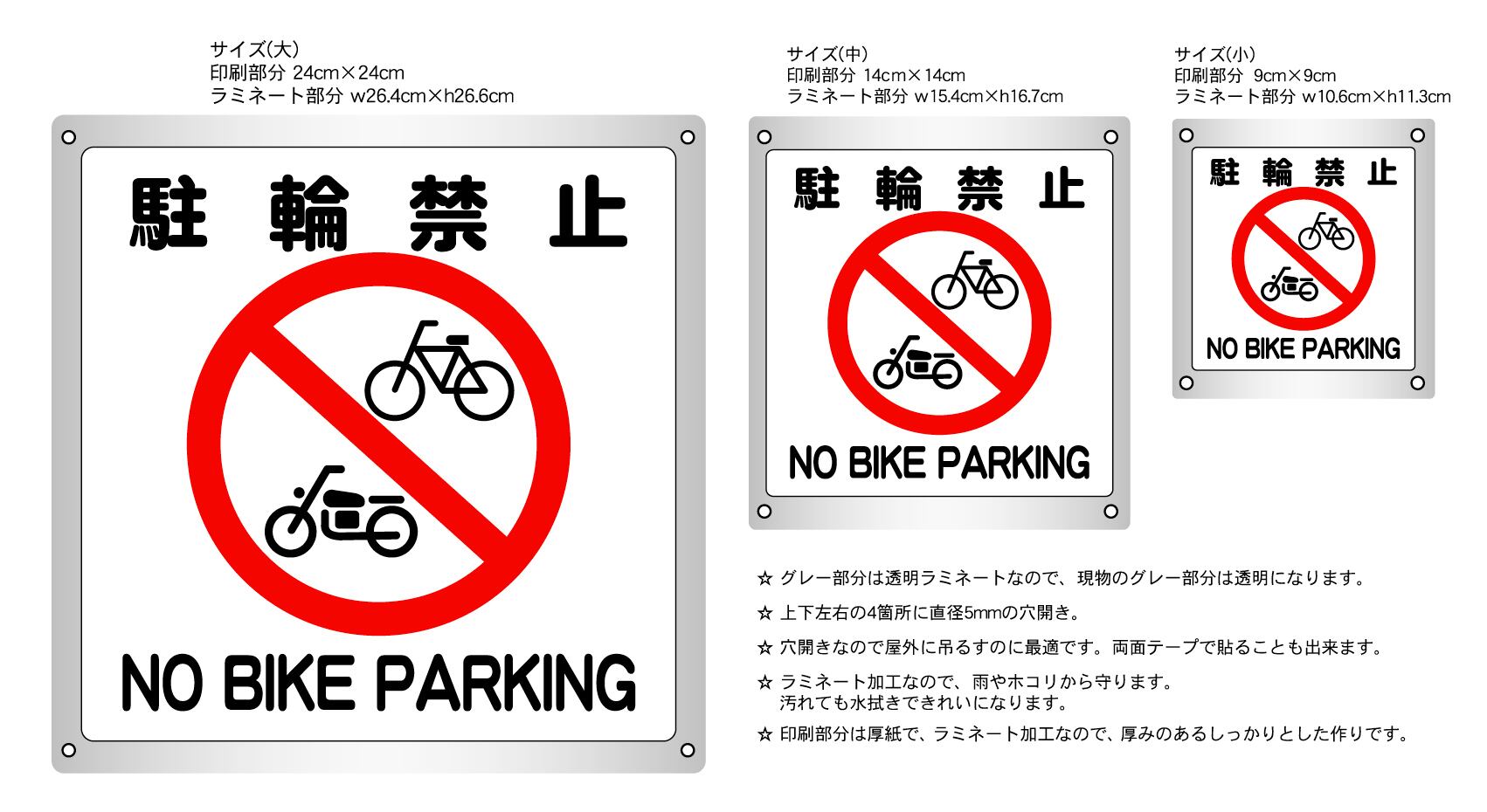 ボード・警告1・26.3×27cm・駐輪禁止