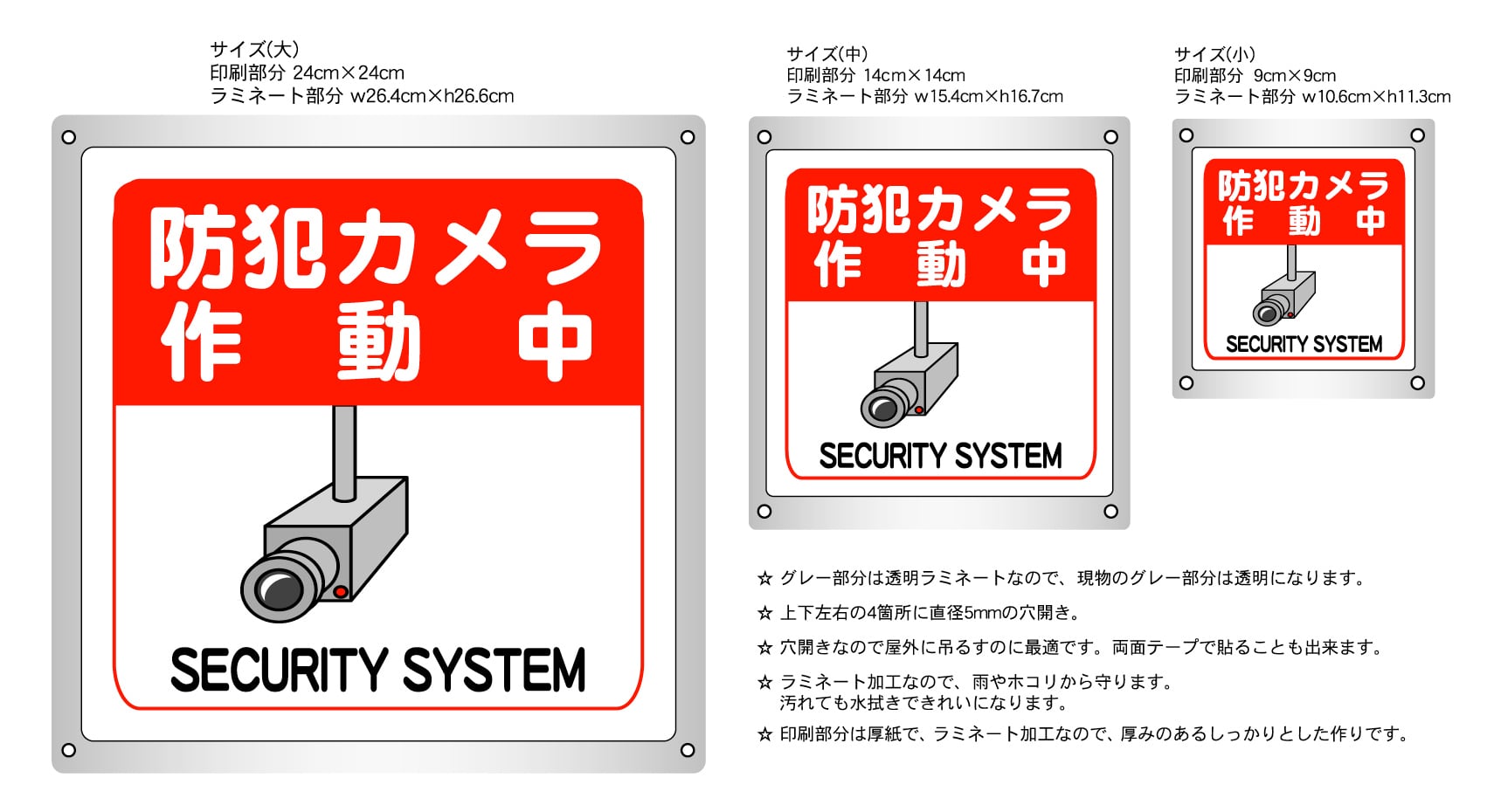 ボード・警告1・26.3×27cm・防犯カメラ作動中