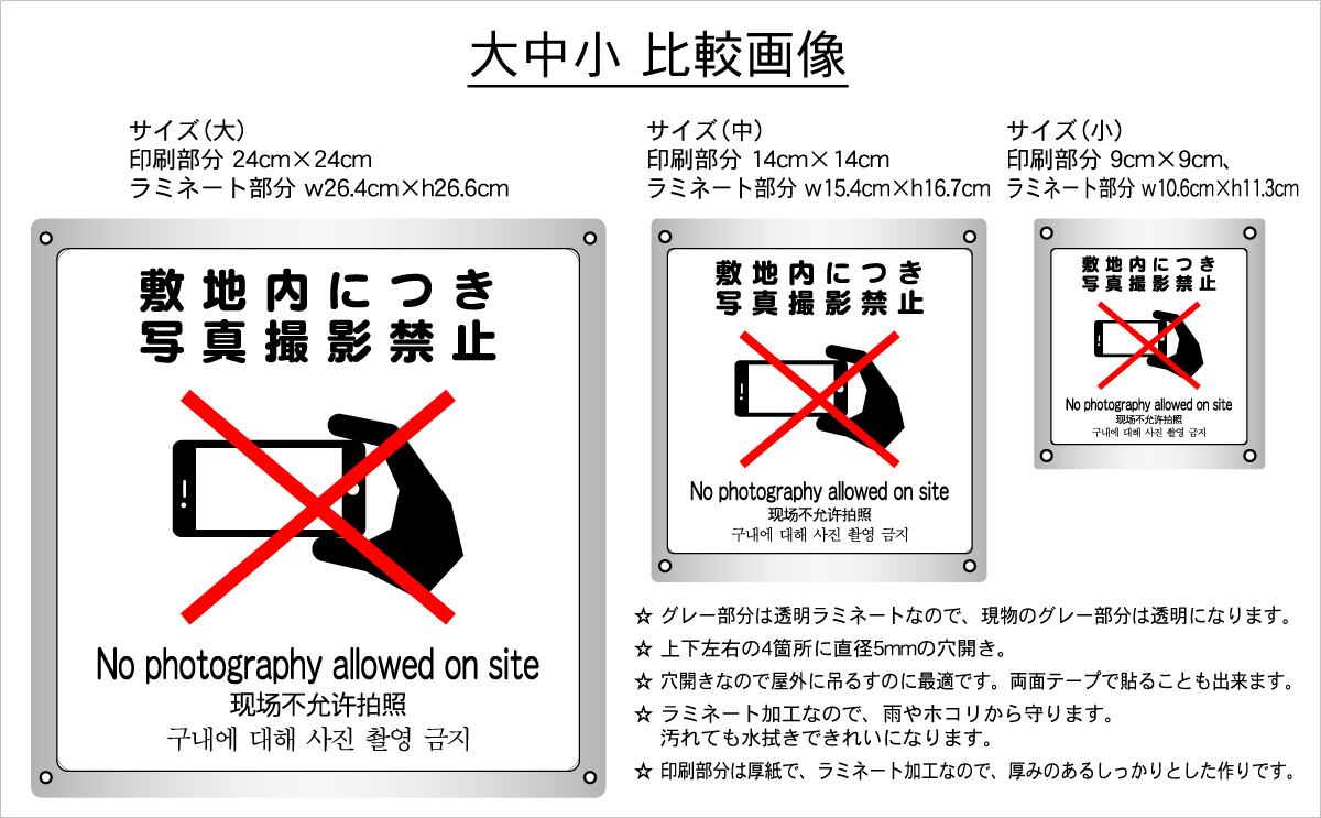 ボード・警告2・26.3×27cm・敷地内につき写真撮影禁止