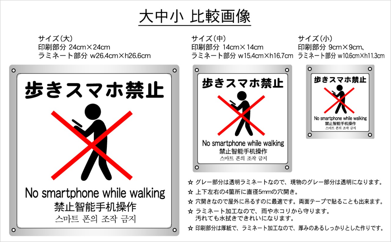 ボード・警告2・26.3×27cm・歩きスマホ禁止