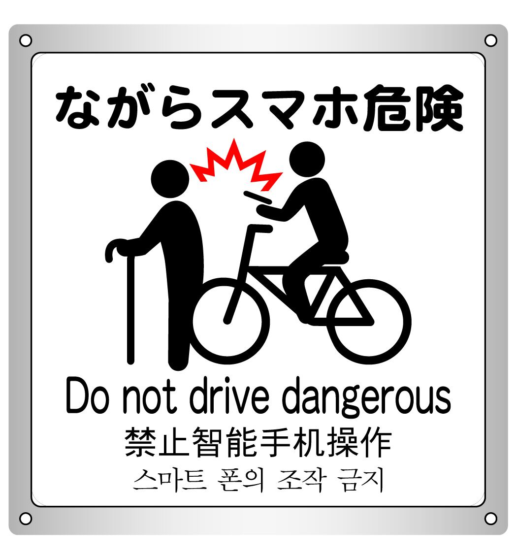 ボード・警告2・26.3×27cm・ながらスマホ危険