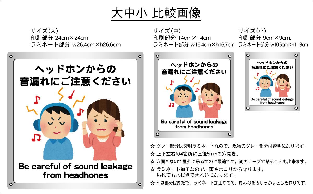 ステッカータイプ、ボードタイプ(防水 ラミネート加工)の2種類に、サイズは大、中、小の3種類がございます。