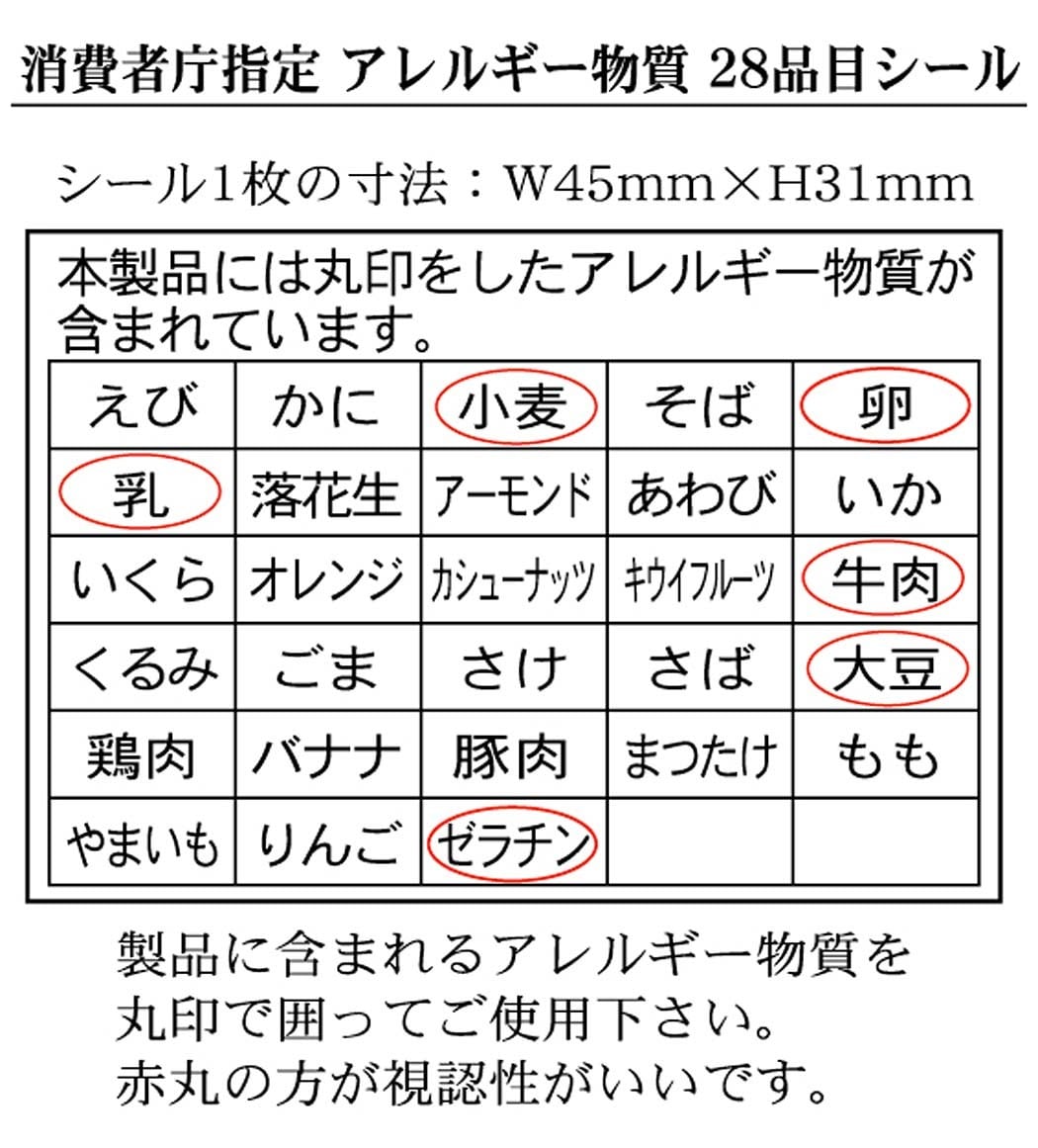 分 類:消費者庁指定 アレルギー物質28品目シール