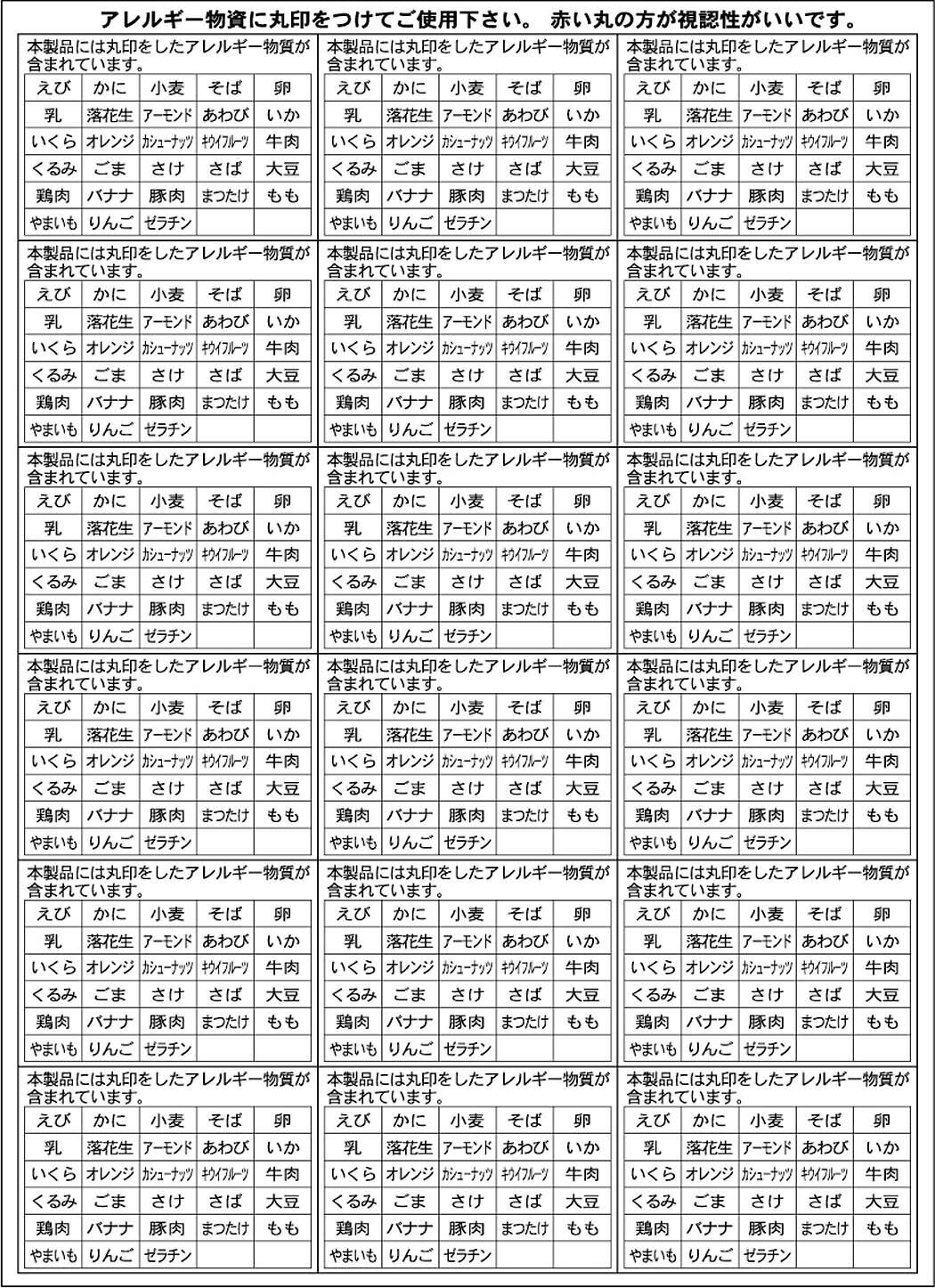 ・消費者庁指定 アレルギー物質28品目シール