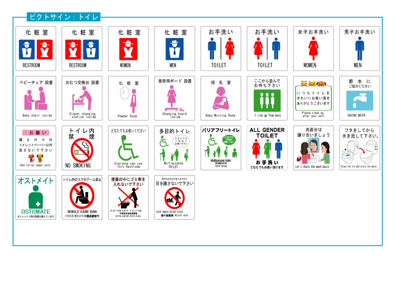 ピクトサインに日本語・英語・韓国語・中国語の4か国語表記のオリジナルデザイン商品です。