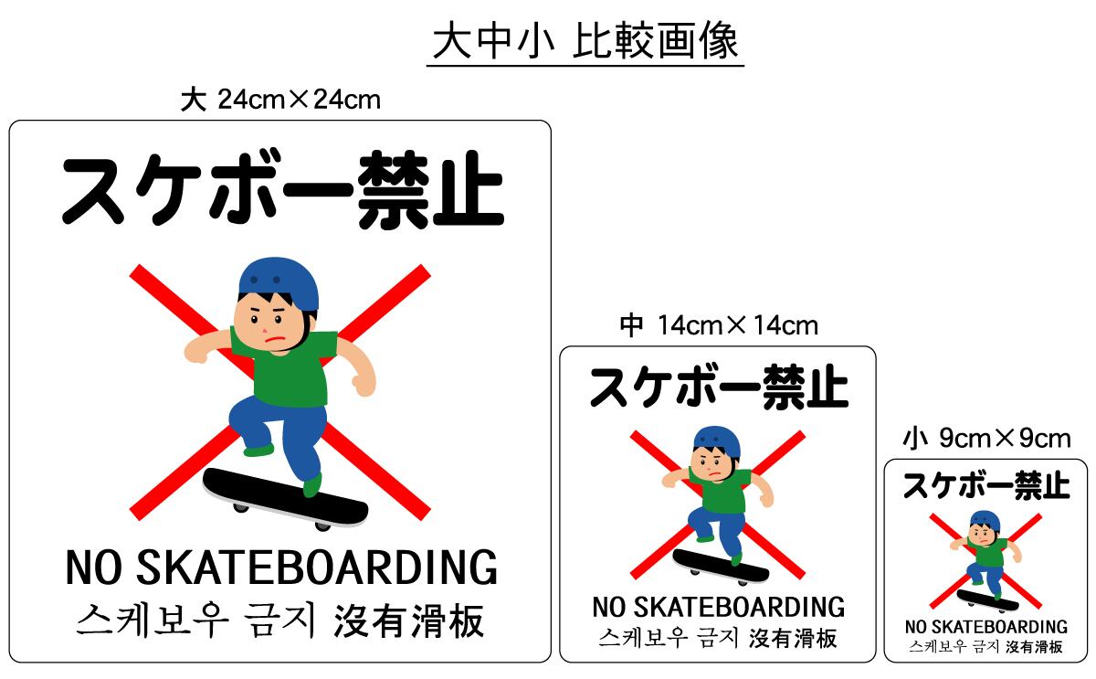 ステッカータイプ、ボードタイプ(防水 ラミネート加工)の2種類に、サイズは大、中、小の3種類がございます。
