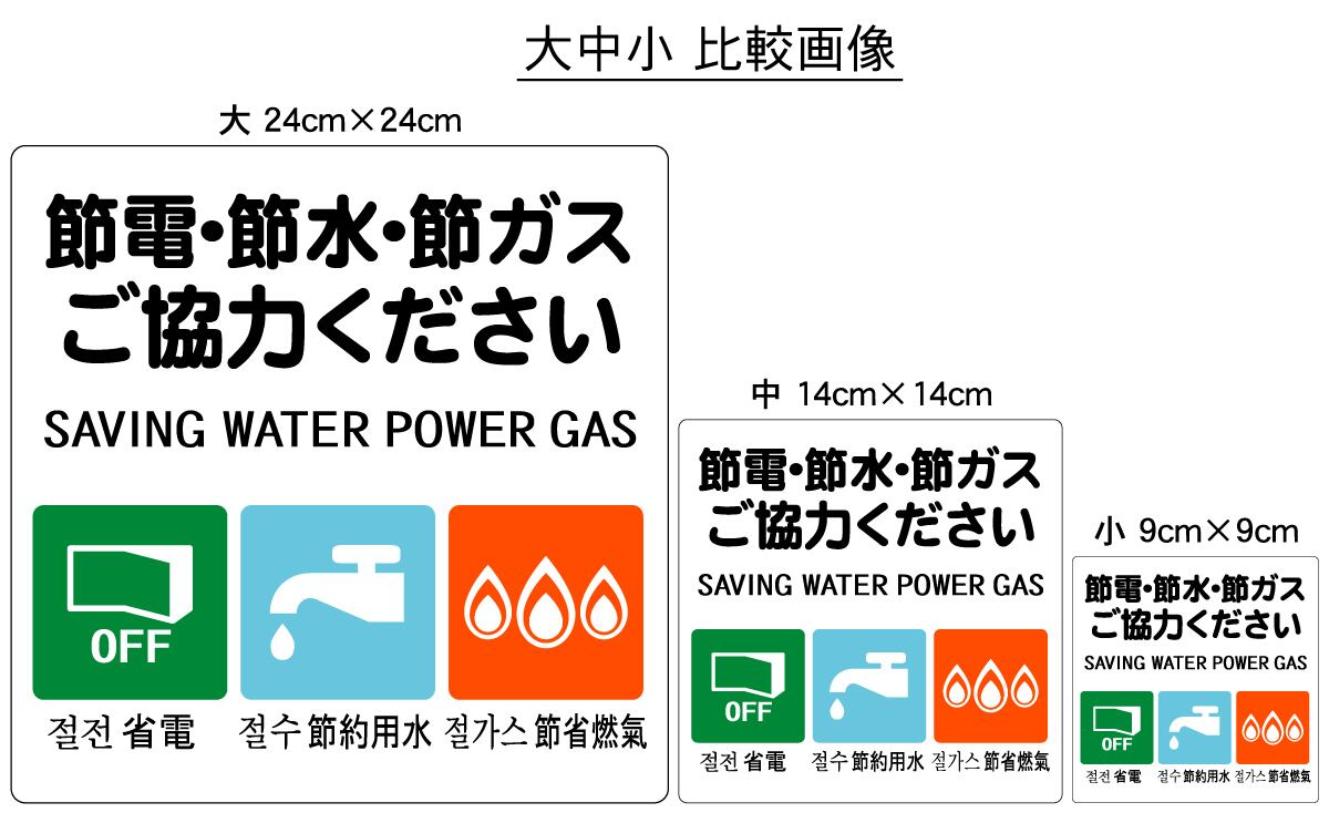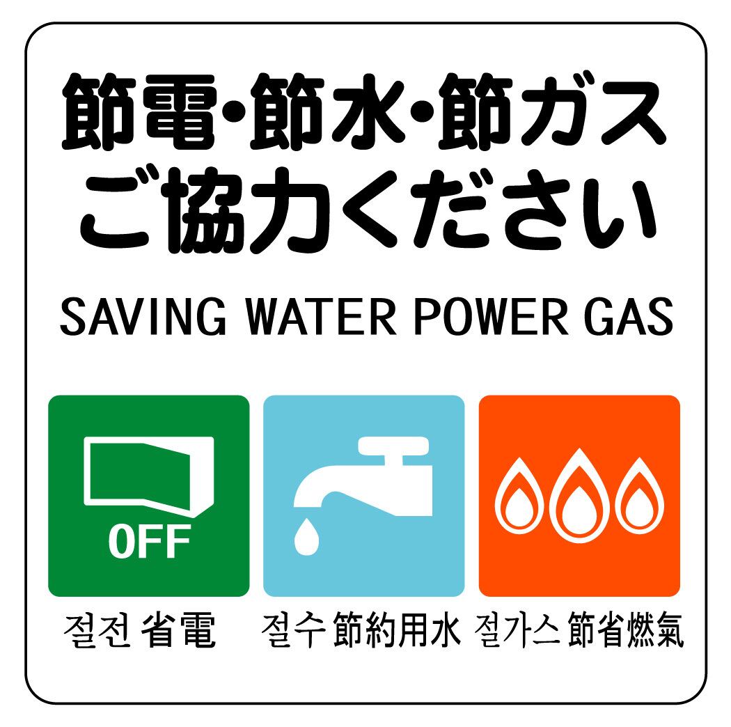 ステッカー・警告4・14×14cm・節電節水節ガスご協力ください