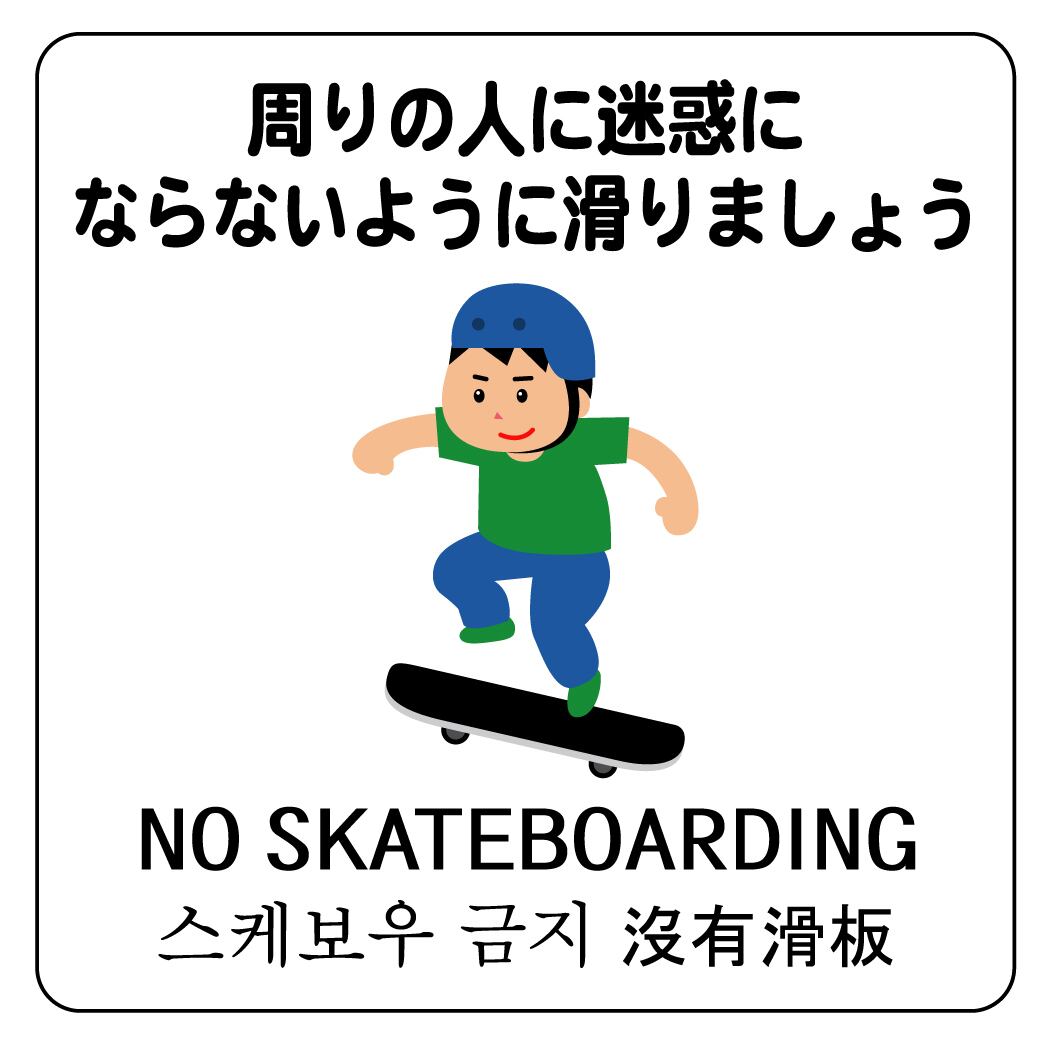 ステッカー・警告4・14×14cm・周りの人に迷惑にならないように滑りましょう