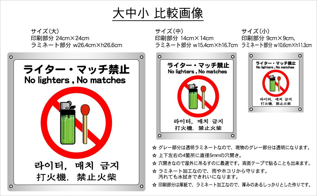 ボード・警告4・26.3×27cm・ライター・マッチ禁止