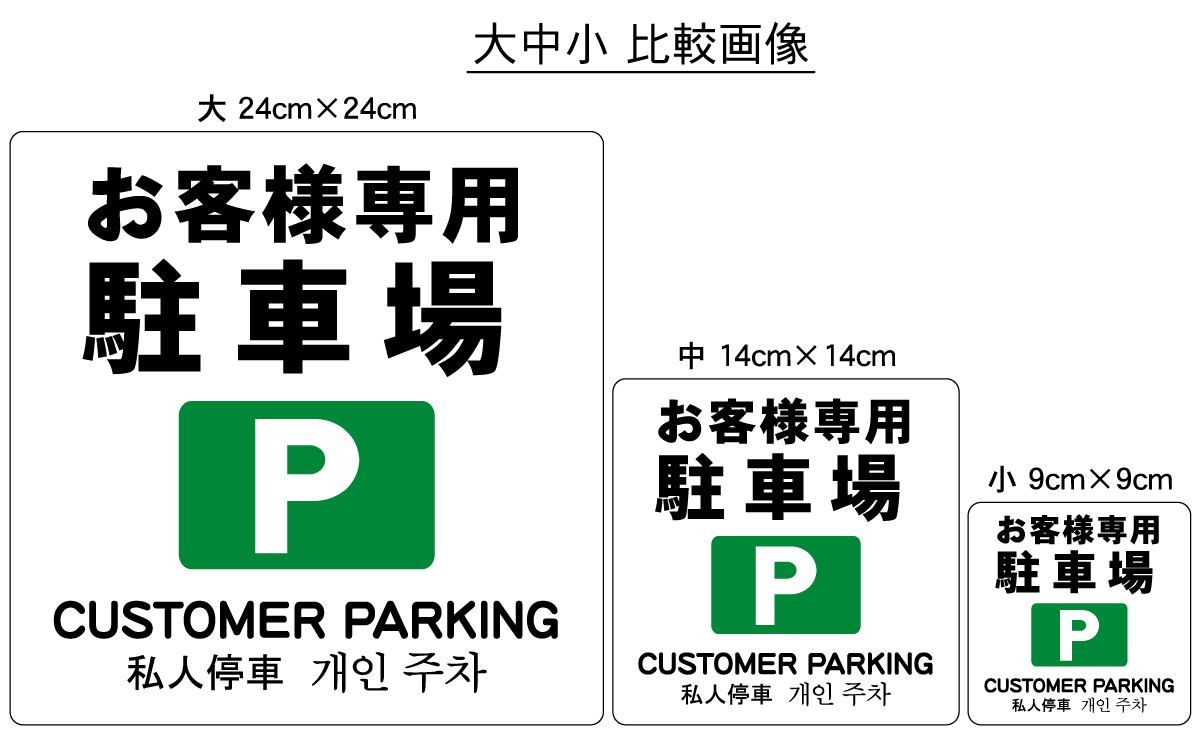 ステッカータイプ、ボードタイプ(防水 ラミネート加工)の2種類に、サイズは大、中、小の3種類がございます。